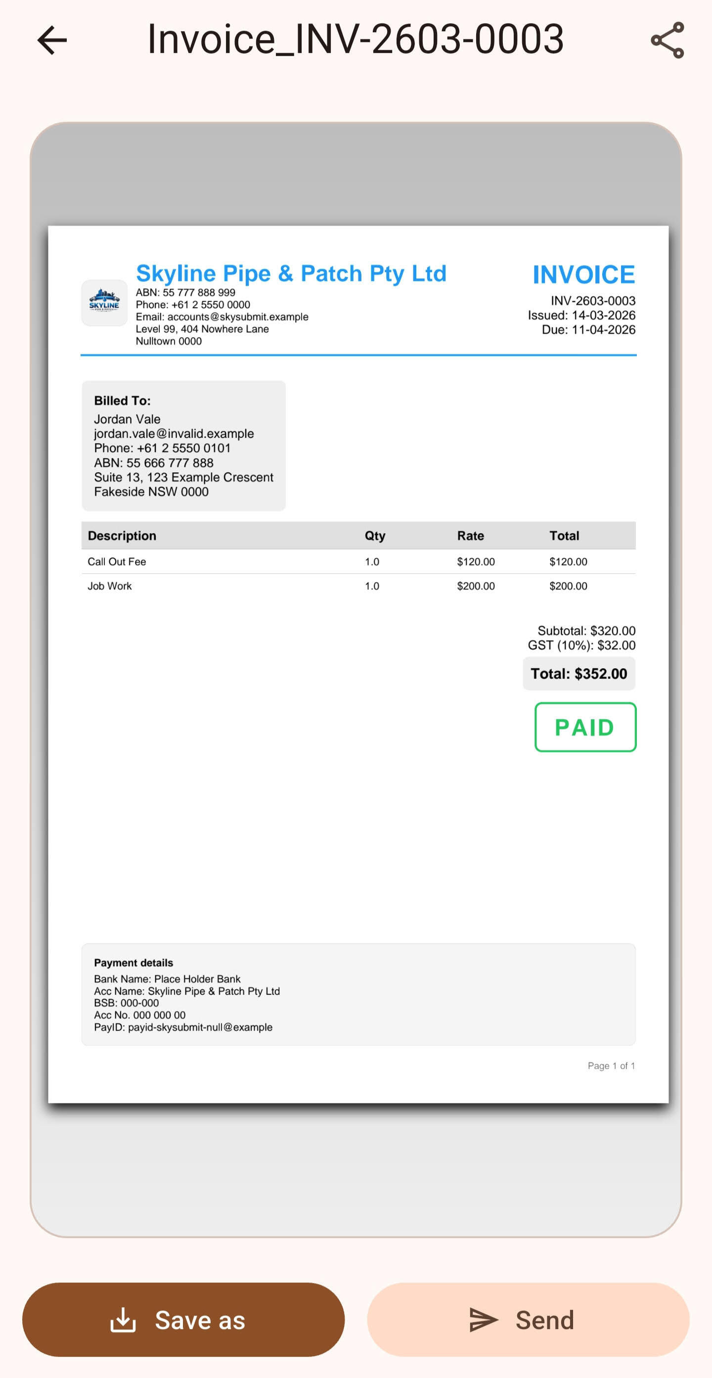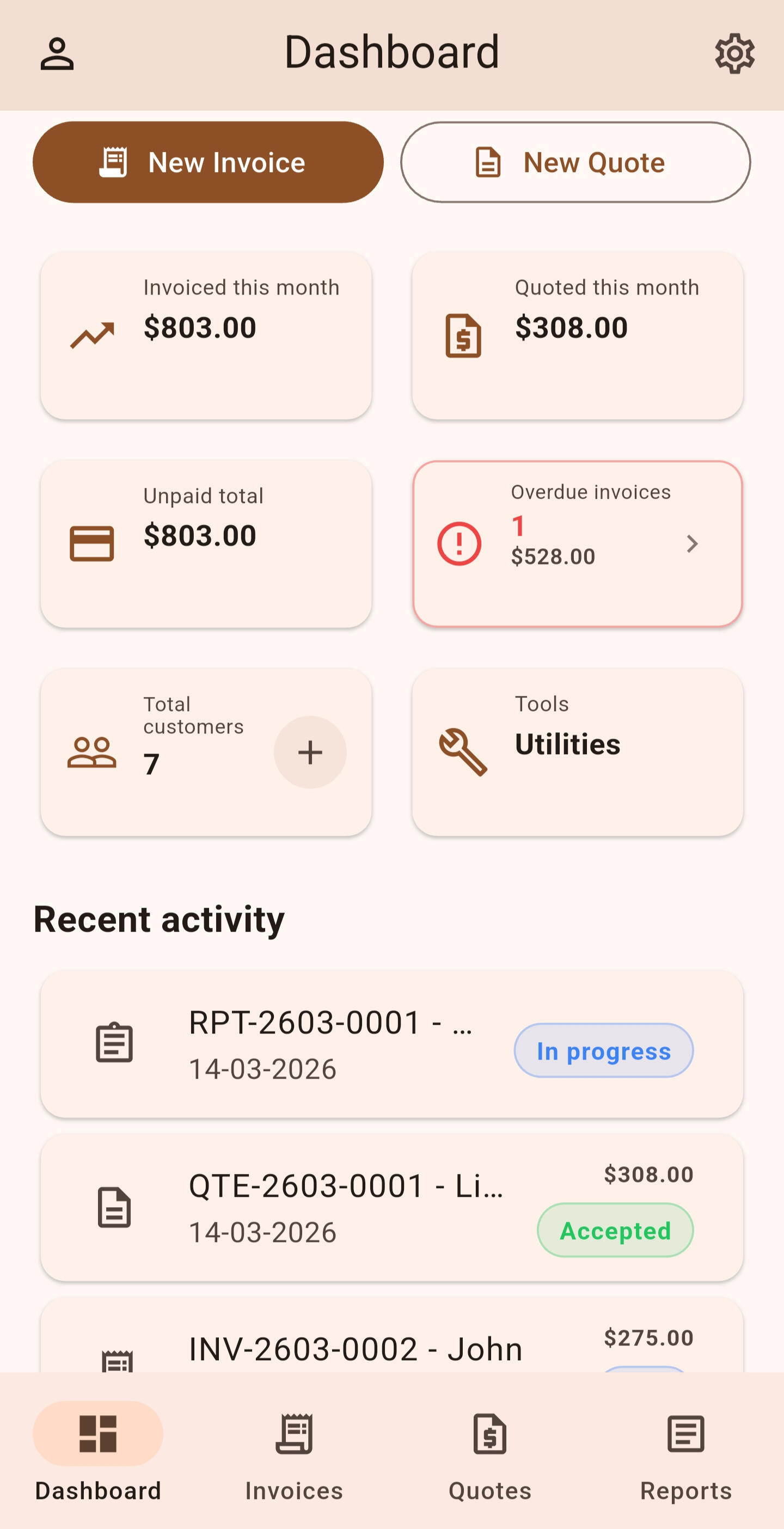 Create invoices, quotes & job reports — fast, offline, and professional.